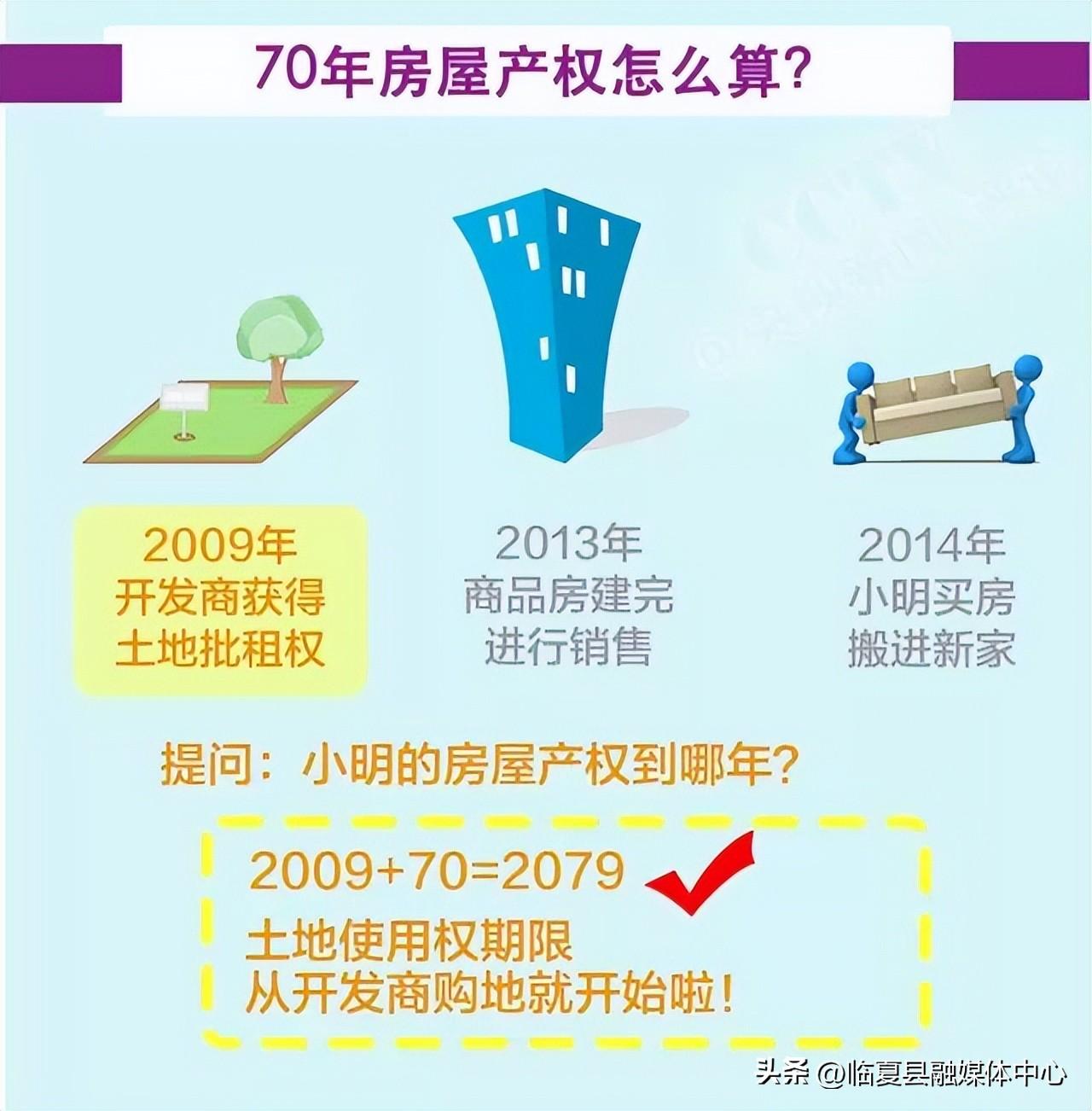 假如你买房拿到房本是2020年9月28日,而开发商拿地是2019年10月1日,那么你的房屋土地使用权70年是从2021年10月1日起开始计算的。所以,你买到房子的时候产权年限就只有66年了,而不是70年。