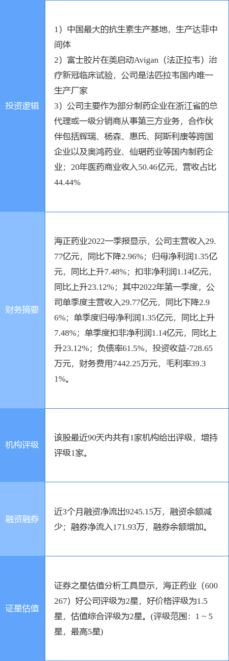 海正药业涨停收盘,收盘价11.51元。该股于9点45分涨停,3次打开涨停,截止收盘封单资金为4868.73万元,占其流通市值0.38%。