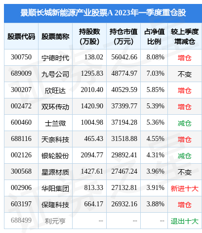 根据2023Q1季报公募基金重仓股数据,重仓该股的公募基金共6家,其中持有数量最多的公募基金为景顺长城新能源产业股票A。景顺长城新能源产业股票A目前规模为24.93亿元,最新净值1.0843(5月4日),较上一交易日下跌0.81%,近一年下跌4.77%。该公募基金现任基金经理为杨锐文。杨锐文在任的基金产品包括:景顺长城优选混合,管理时间为2014年10月25日至今,期间收益率为240.8%;景顺长城环保优势股票,管理时间为2016年3月15日至今,期间收益率为212.9%;景顺长城创新成长混合,管理时间为2019年10月17日至今,期间收益率为59.05%;景顺长城成长领航混合,管理时间为2020年5月28日至今,期间收益率为25.15%。