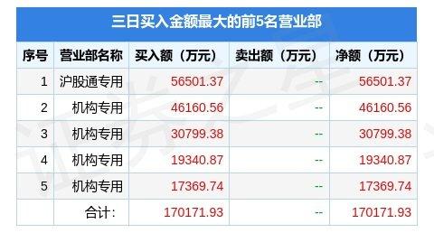 从龙虎榜公布的三日买卖数据来看,机构合计净买入11.37亿元,北向资金合计净卖出5.09亿元。