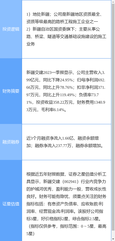 新疆交建涨停收盘,收盘价21.52元。该股于11点0分涨停,2次打开涨停,截止收盘封单资金为3373.72万元,占其流通市值0.24%。