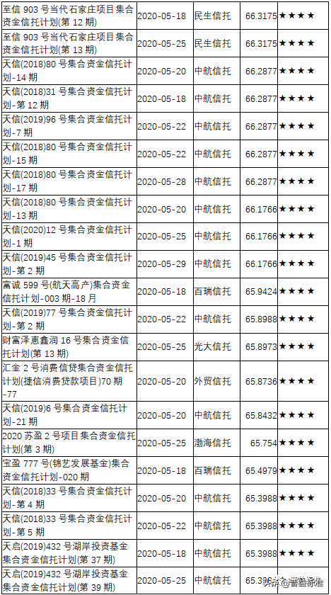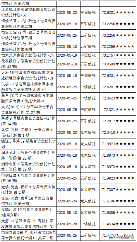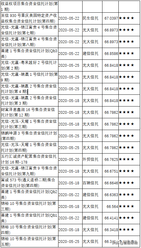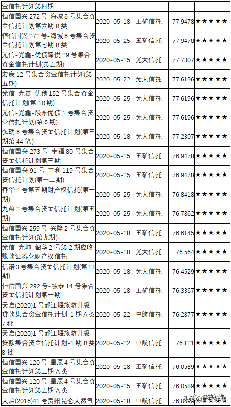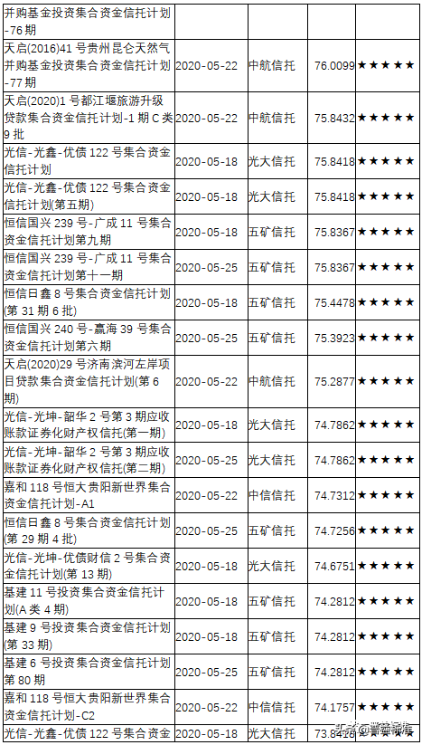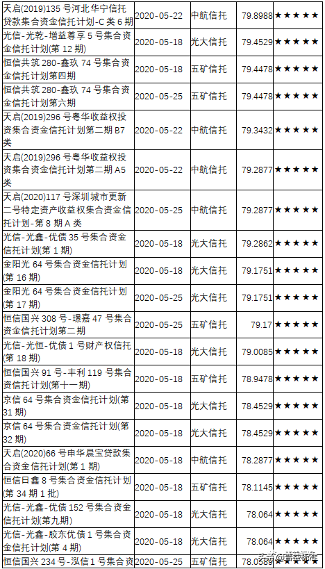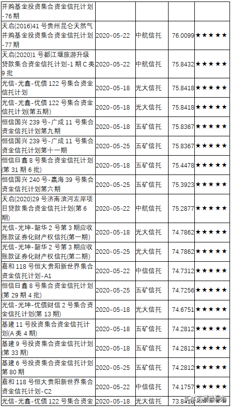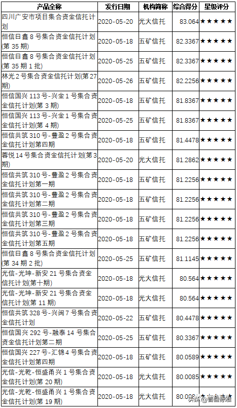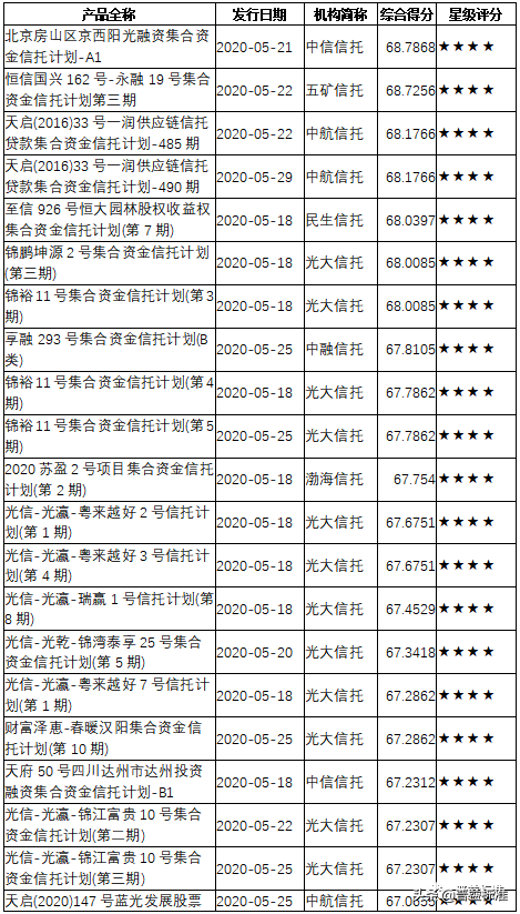 三、2020年5月下半月星级产品评价结果