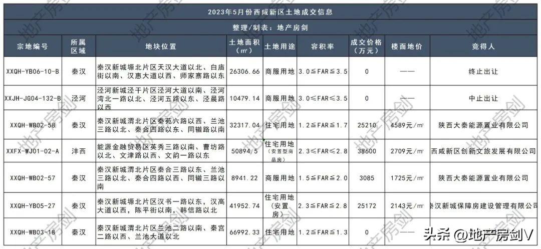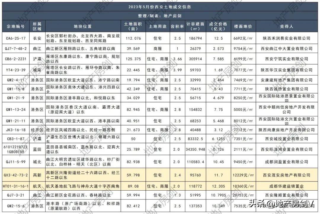 根据地产房剑统计,2023年5月份,西安、西咸新区共计有21宗开发用地成交,