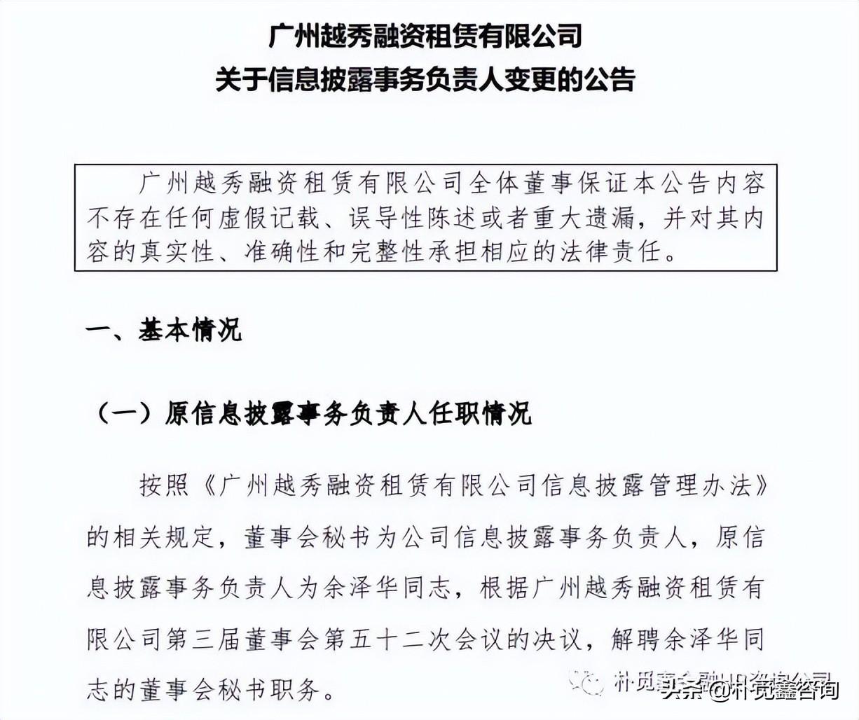 四、广州越秀租赁董事会秘书、信息披露事务负责人变更