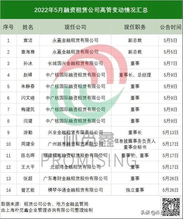 永赢金融租赁有限公司则是新任命了章洁和章海雅为新任副总裁。