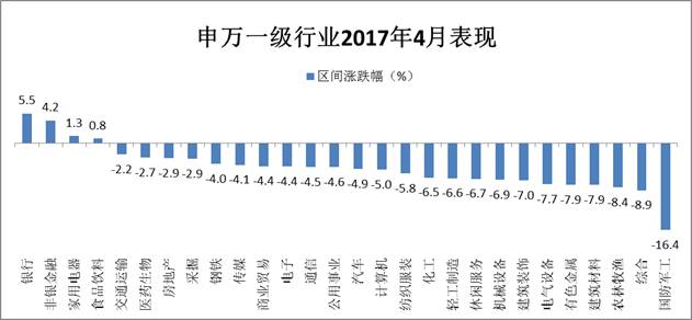 图1:申万一级行业2017年5月表现;来源:Wind资讯,牛熊交易室