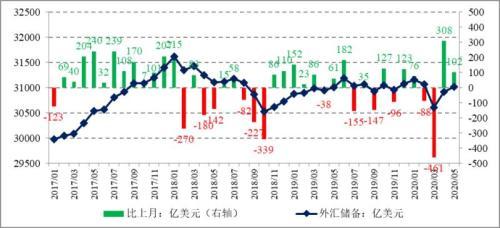 外汇储备的小幅升值主要得益于5月汇率折算和资产价格变化带来的正面估值效应。实际上,疫情发生以来,全球金融市场波动加剧,估值变动对外汇储备规模影响较大,外汇储备月度波动性也加大,例如,3月外汇储备环比大跌461亿美元,但4月又转跌为增,但月环比大增308亿美元。