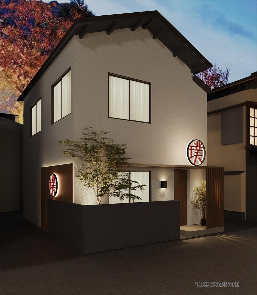 现代日式风格的全新外立面改造,简洁、干净、静雅,简单的装饰线条与留白,勾勒出建筑的朴素自然之美,闹市中的一抹静谧,现代日式文化的完美体验。