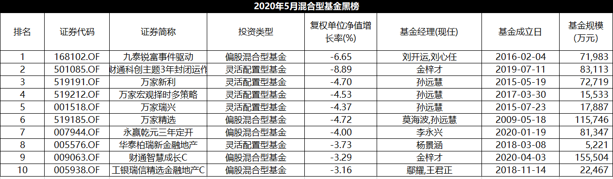 纳入统计的权益类混合型基金包括偏股混合型基金、平衡混合型以及灵活配置型。界面新闻综合收益率、波动率、择时与选股等维度对基金进行评估,同时对上榜基金进一步筛选,剔除资产规模合计低于五千万,以及成立时间不超过一个月的基金,并排除非投资收益原因造成的净值上涨,整理形成月度红黑榜。