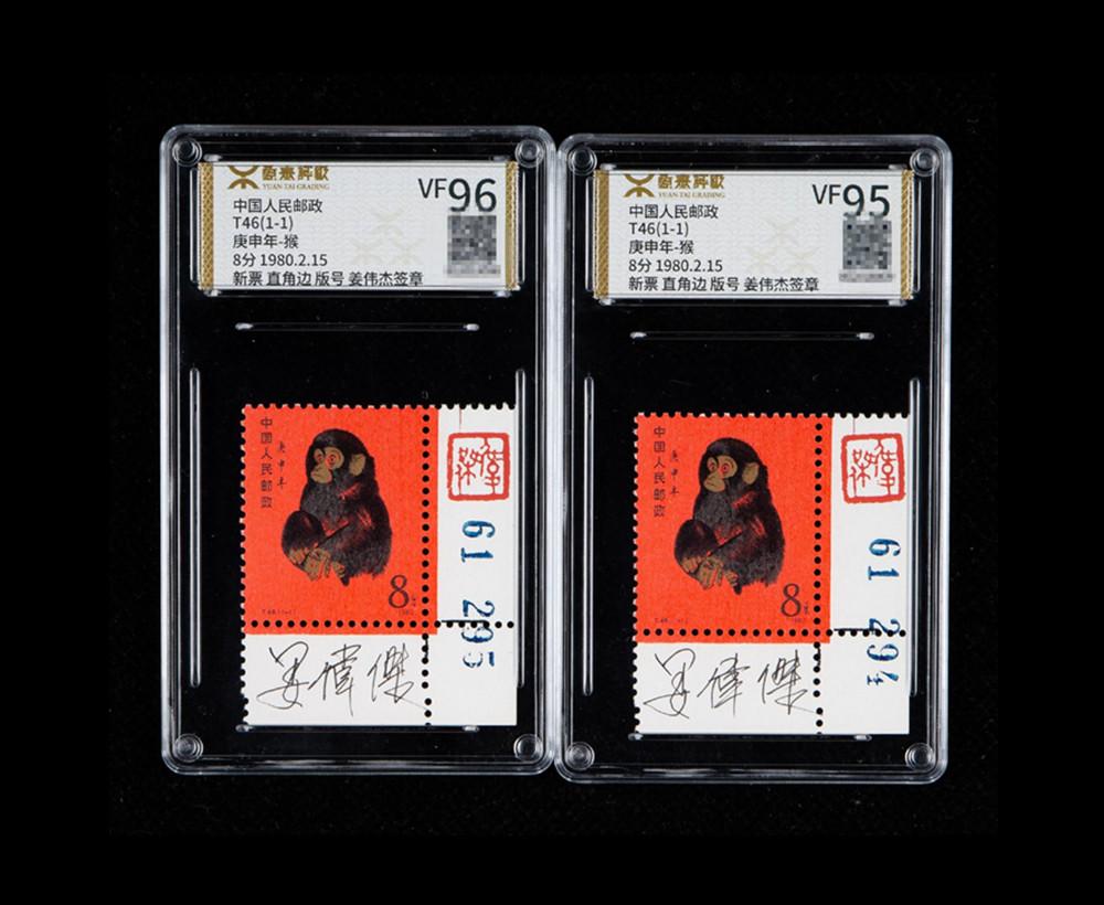 厂铭版猴票的价格依然是最稳的,毕竟一个大版只有区区的两枚,另外雕刻师姜伟杰签名的两枚票非常有特点,评级分更是有高达96分,均价飙升到了不可思议的1.9万元一枚,当之无愧的成了5月份单枚最贵拍品,就是凭着这种走精品版式的套路,就轻松拿捏住了很多集邮爱好者,这样的藏品是很多人梦寐以求的。