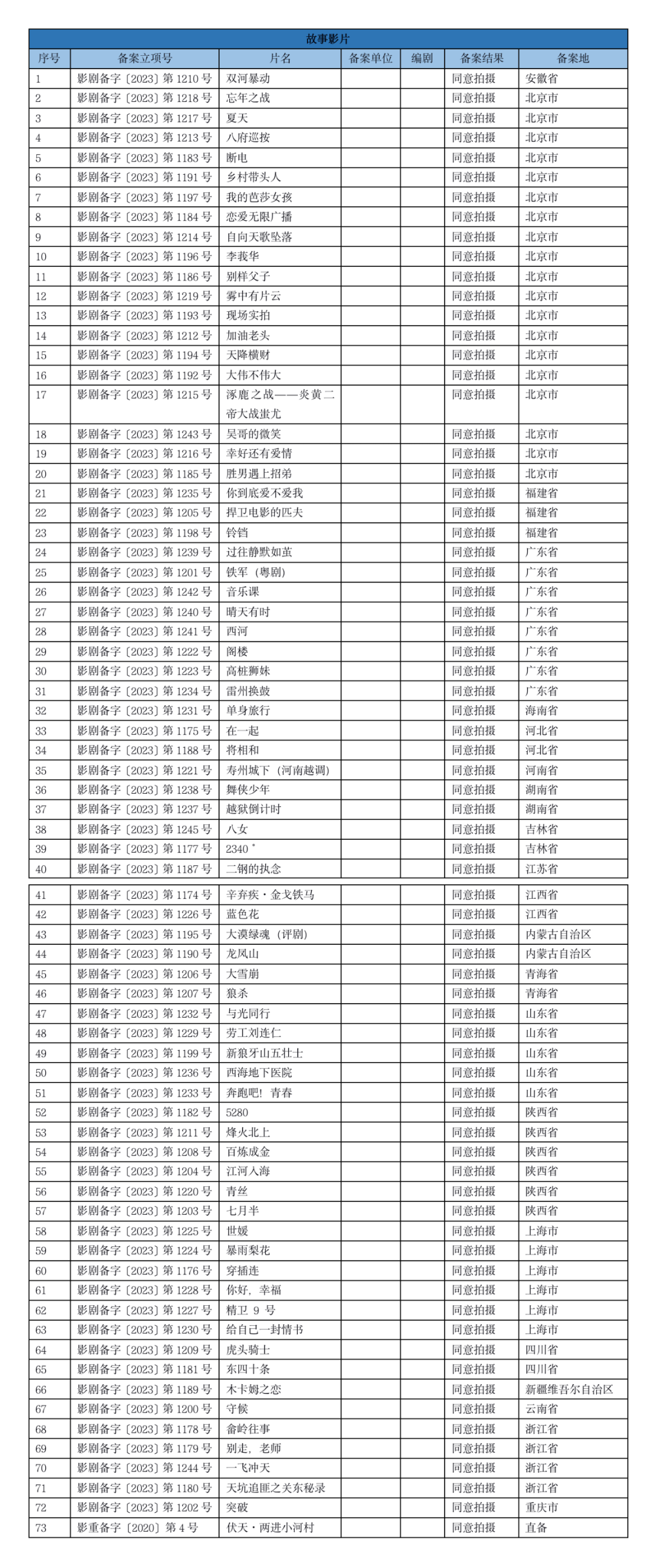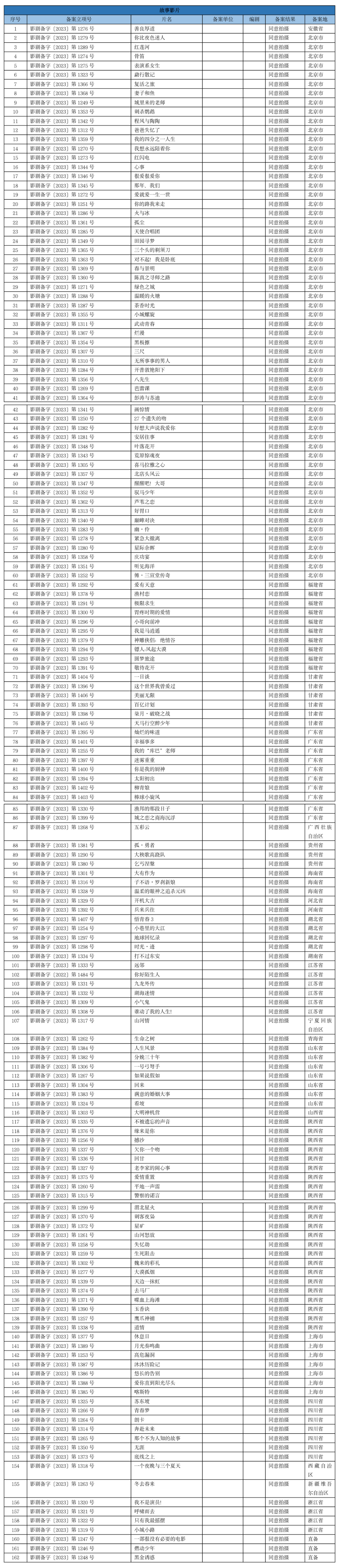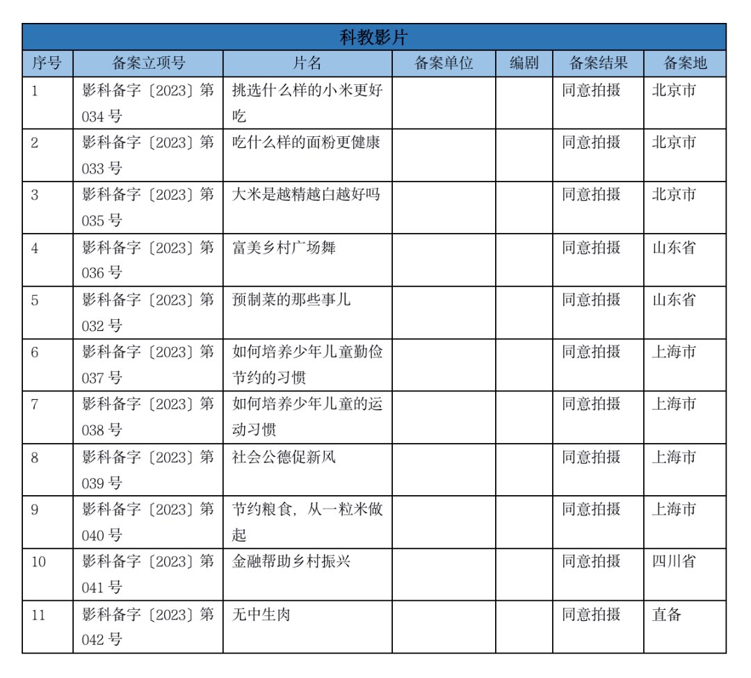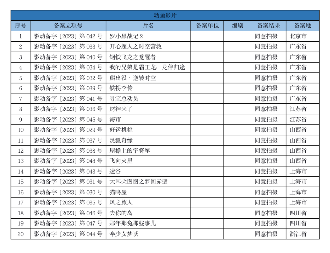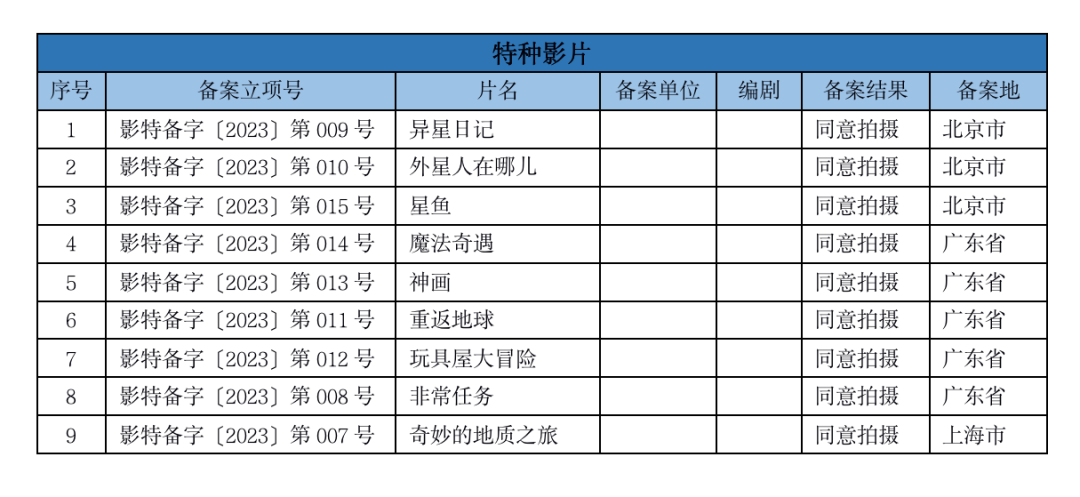 7月10日,国家电影局发布了关于2023年5月下全国电影剧本(梗概)备案、立项公示的通知。5月下全国处理备案故事片共162部,加上5月上备案的138部,总共备案300部电影。从备案的影视公司来看,长影集团、光线传媒、中影、寰宇娱乐等公司均有备案电影。