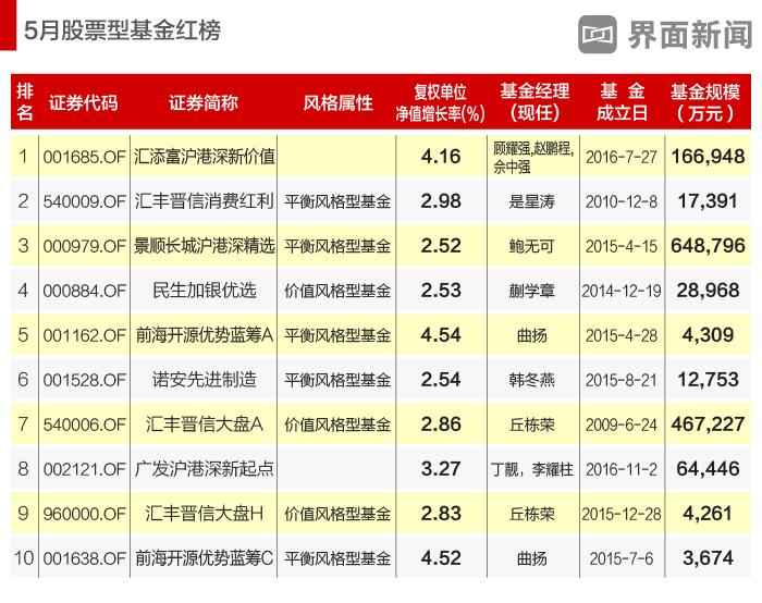 5月红榜基金大多是今年频繁上榜的老面孔。