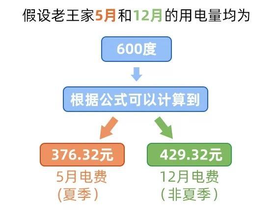 假如某位居民用户5月和12月的用电量均为600度,根据公式可以计算:5月电费为376.32元、12月电费为429.32元。由此可见,用电量相同,因夏季与非夏季电量档位标准不同,电费也不会一样。