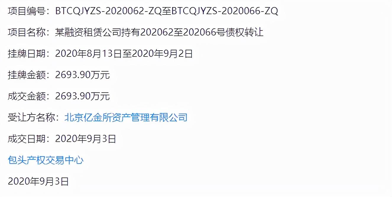 北京亿金所曾经在包头产权交易中心受让大量债权,而这些债权的挂牌方全部为中博联合国际融资租赁有限公司。