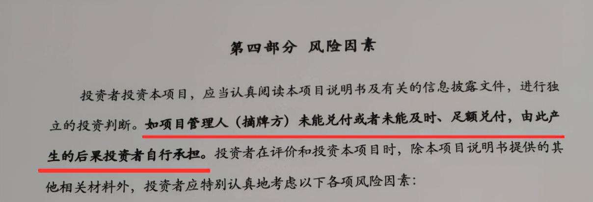 但是在产品风险因素中又同时提到“如果项目管理人未能兑付或者未能及时、足额兑付,由此产生的后果投资者自行承担。”称项目存续期内,如果北京亿金所的经营、财务状况出现问题,不能按期、足额兑付本项目的本金和预期收益,投资者的本金和预期收益有全部损失的风险。