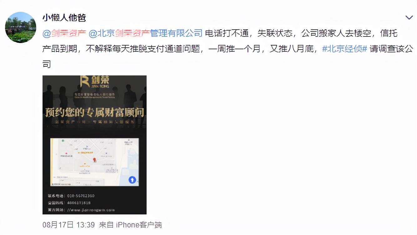 但是如今在网上有大量剑荣资产客户投诉产品逾期后不能兑付。