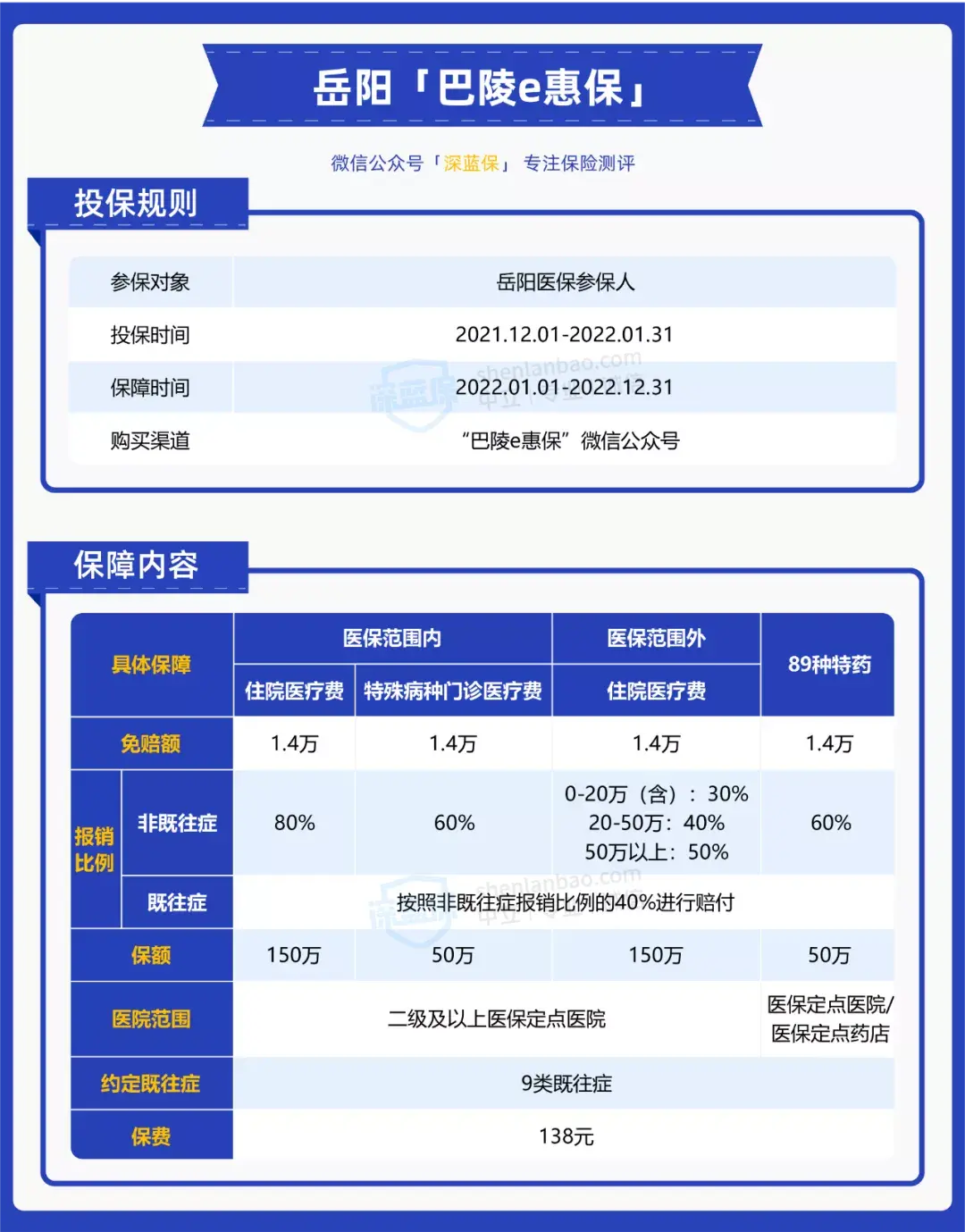 可以看到,巴陵 e 惠保报销范围覆盖医保内外,还有特定病种门诊和特药保障,对于约定既往症造成的治疗费用也能报销,