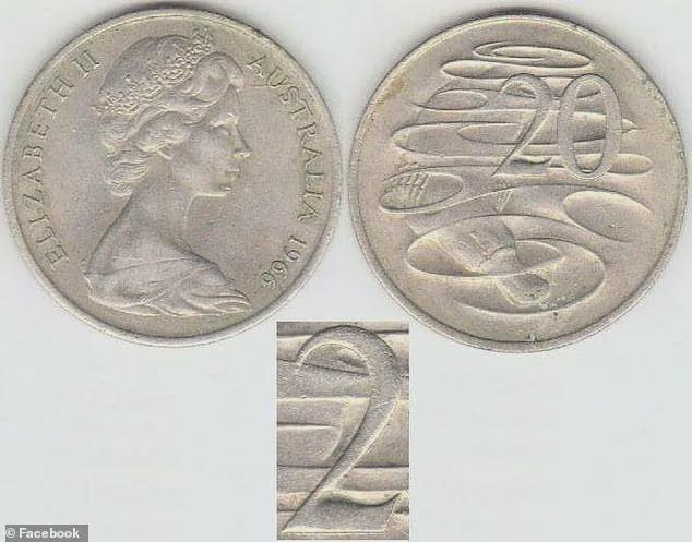 1966年发行的20澳分硬币,数字“2”下方成了一条独特的波浪线,现在售价高达2000澳元(RMB1万元)。