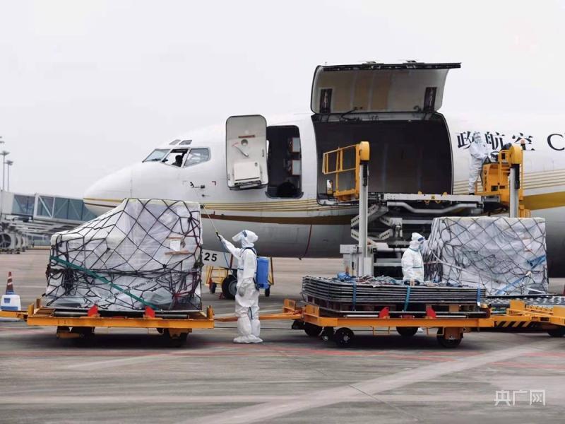 义乌—大阪全货机航班卸机保障(央广网发 义乌机场管理公司供图)