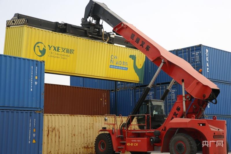 铁路义乌西站中欧班列装车的繁忙场景(央广网发 “义新欧”中欧班列义乌平台运营方义乌天盟实业投资有限公司供图)