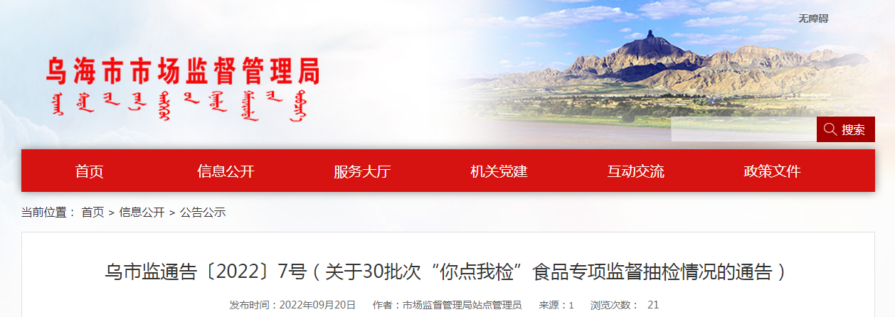 中国质量新闻网讯 9月20日,内蒙古乌海市市场监管局网站发布30批次食品安全“你点我检”专项抽检情况。其中,抽检8批次肉制品,全部合格。