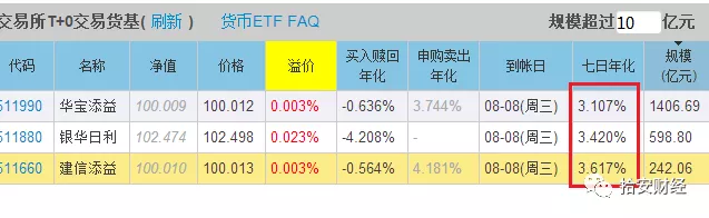 但既然作为交易型的货基,流动性是我们首先要考虑的,一般规模较大的货基流动性也会好很多。所以拾安重点介绍规模前三的:华宝添益(511990)、银华日利(511880)和建信添益(511660)。
