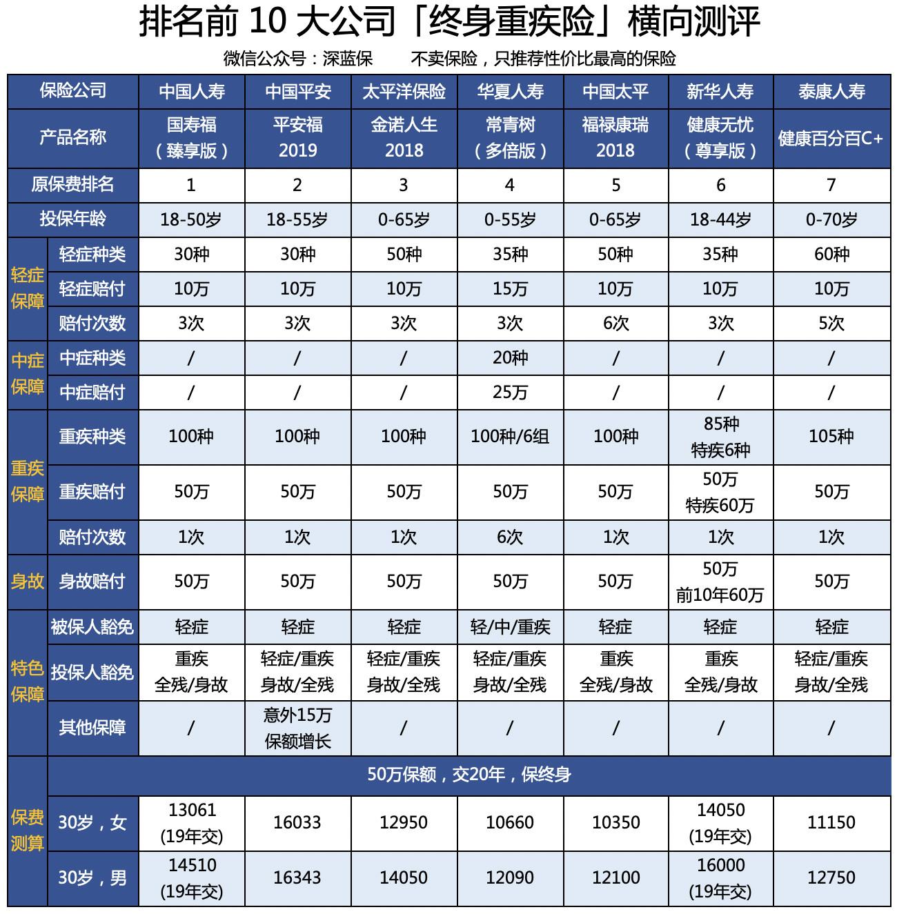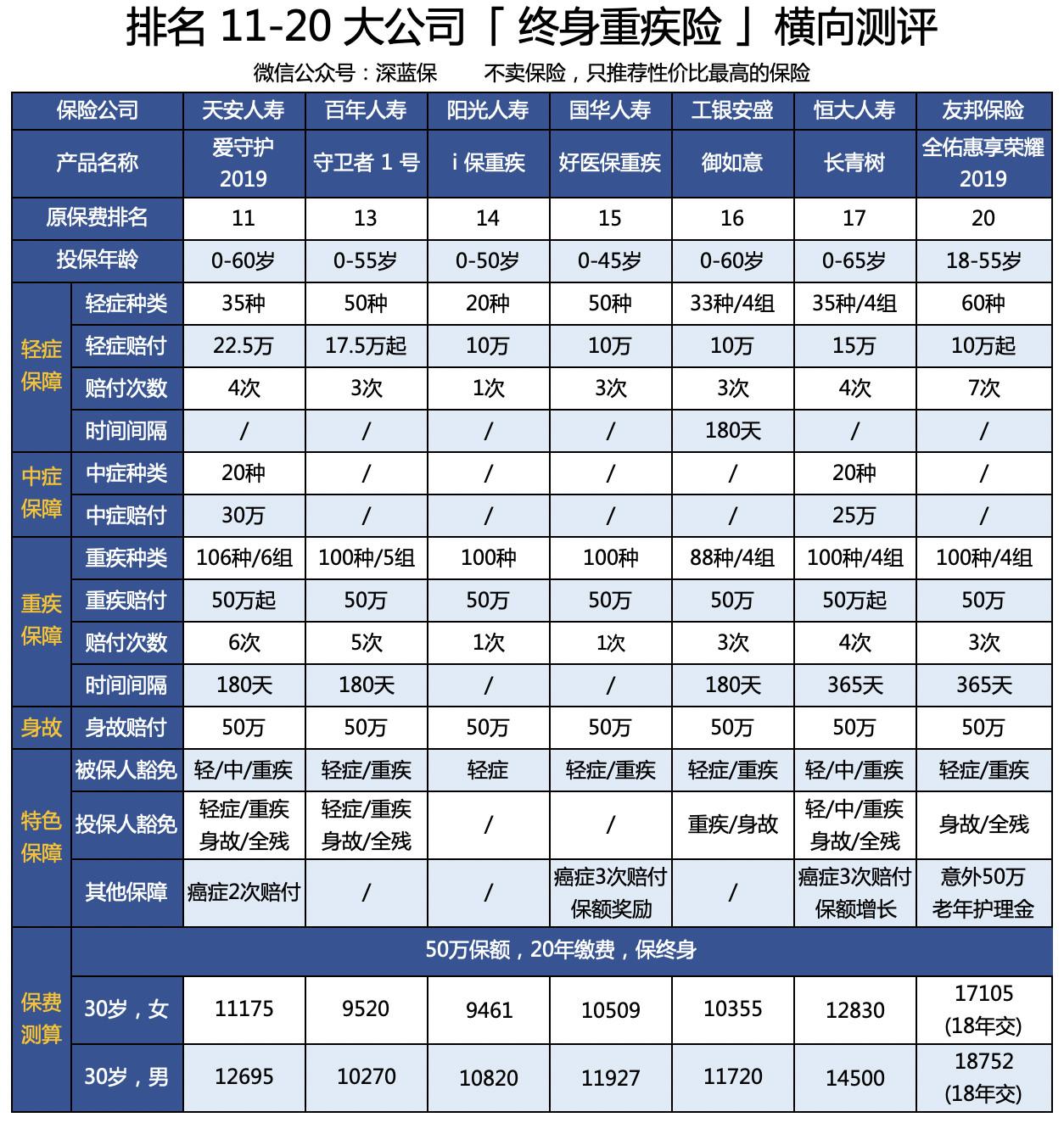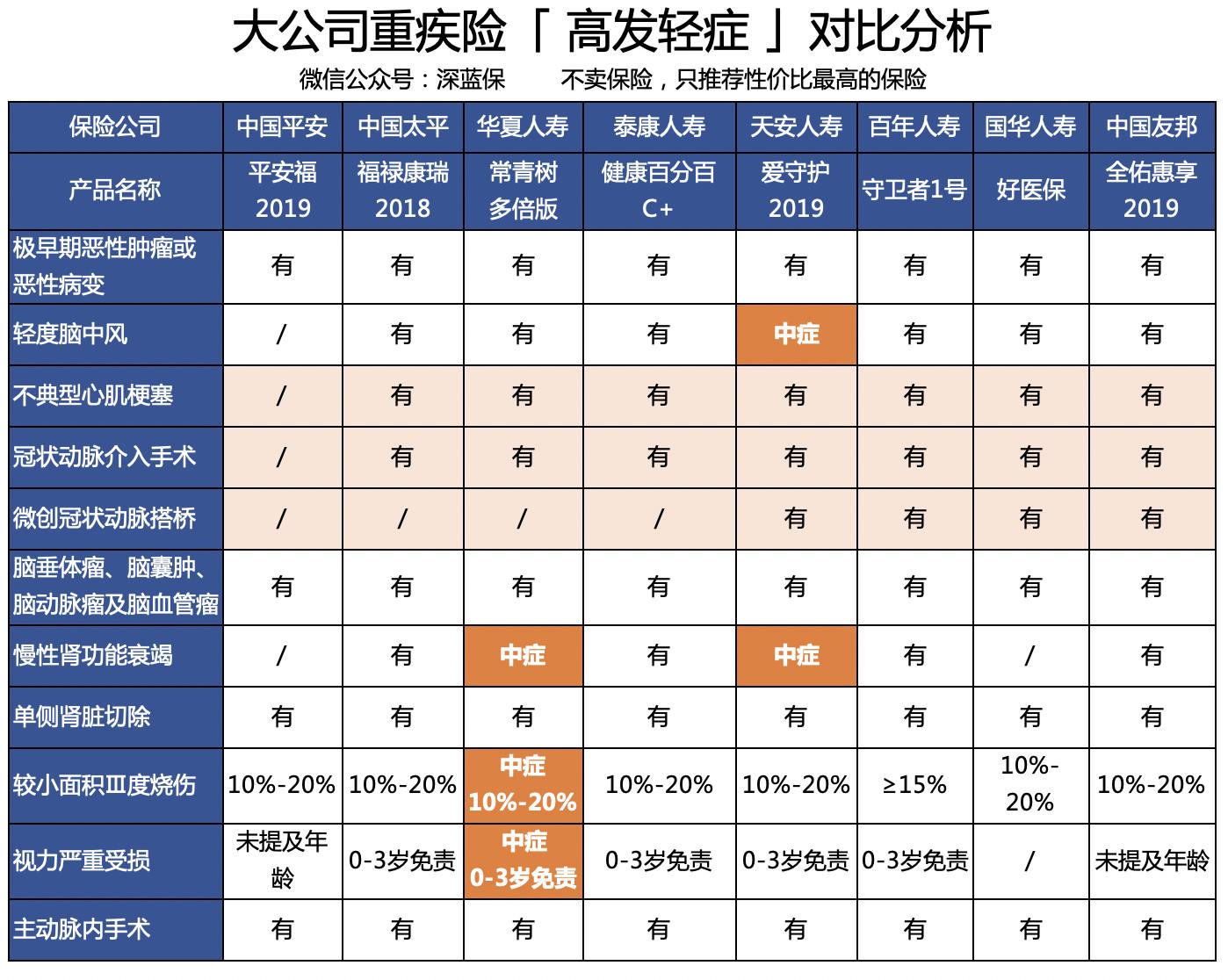 2019 年大公司重疾险横向测评!