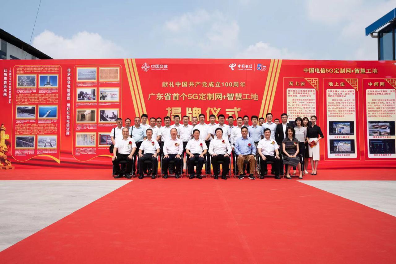 本网讯 5月8日,广东省内首个标杆“5G定制网+智慧工地”揭牌仪式在中交四航局一公司白云区黄金围大道第1标段工程总承包项目经理部现场隆重举行。中交四航局一公司党委书记陈国良、总工程师荣劲松、副总经理王胤彪,中国电信股份有限公司广州分公司副总经理张晖、解决方案中心总经理蒋钫明、天河分公司党委书记张京穗、天河分公司副总经理姚丽等出席活动,澳门振华海湾工程有限公司党委书记赵玉喜受邀出席。据张晖介绍,这是继与珍宝巴士共同打造的广州首个5G智能公交站、与天河公安合作创建的广州首个5G智慧新警务、与广州市政府一起举办的广州首个5G+AI花市之后,广州市乃至广东省5G智慧在基建领域的一个创新与突破。
