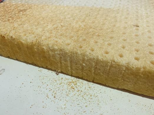 但是有个致命的缺点就是寿命问题,正常在床垫里面的乳胶寿命一般在8~10年,乳胶这玩意很娇贵,只要接触空气和阳光,就很容易急速氧化发黄掉粉,所以像这种单纯的乳胶垫乳胶寿命一般只有不到3年的时间。