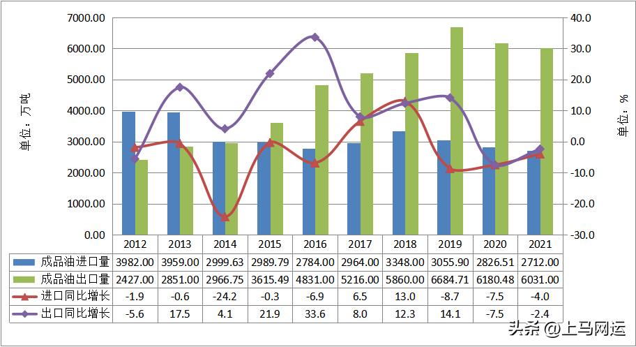 总结二:成品油净出口量回落,较上年减少约35万吨