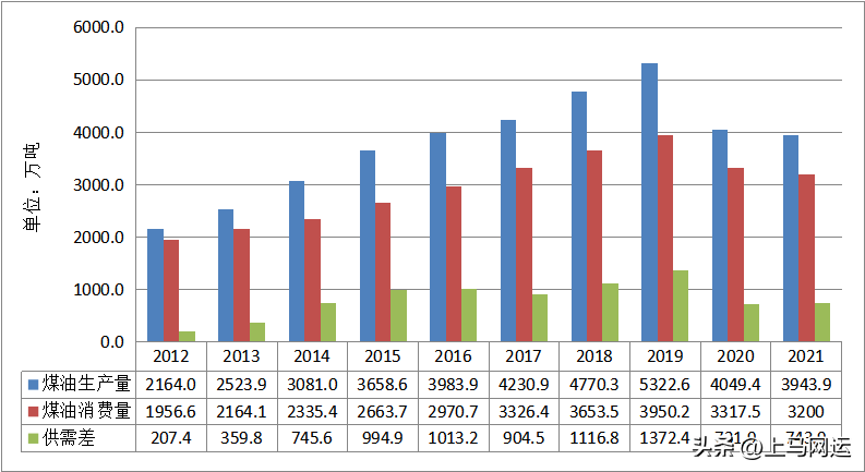 (数据来源:国家统计局、行业统计数据) 图3-6 2012-2021年煤油供需情况