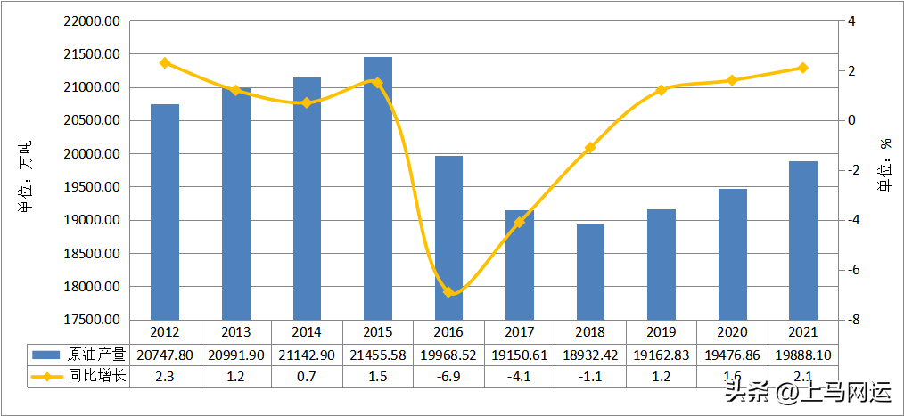 国家统计局数据显示,2021年,我国原油产量达到19888.1万吨、同比增长2.1%,这是我国原油产量连续3年回升。其中页岩油实现经济规模生产,产量达240万吨。渤海油田原油产量达3013.2万吨,成为我国第一大原油生产基地,原油增量约占全国原油增量的近50%。