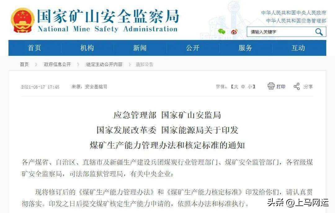 应急管理部、国家矿山安监局、国家发展改革委、国家能源局四部门联合发文,出台新修订的《煤矿生产能力管理办法》