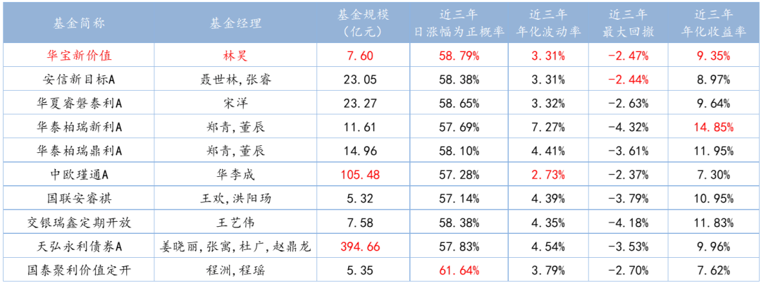 能涨抗跌TOP10的“固收+”基金榜单如下:
