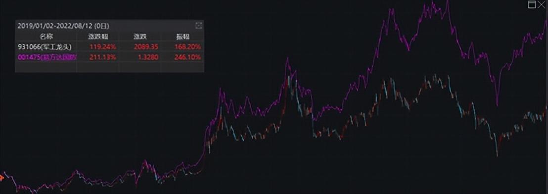 比如,从2019年以来,易方达国防军工混合的总收益为211%,但是同期的军工龙头收益仅为119%,两者之间的差异还是非常大的,尤其是在震荡市的情况下,能够跑出更为明显的超额。