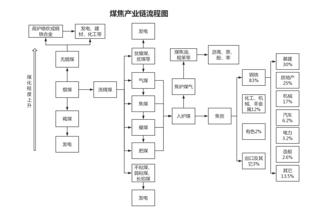 焦煤又称“主焦煤”,属于强粘结性、结焦性的炼焦煤煤种,是焦炭生产中不可或缺的基础原料配煤。通常在焦炭生产中,对焦煤的配入比例一般存在下限要求,一般比例大约占30%-50%,每生产一吨焦炭大约需要消耗焦煤1.33吨。焦 煤作为最具有代表性的炼焦煤,联接着煤、焦、钢三个产业,在产业链条上具有重要地位。能用于期货交割的焦煤必须是经过洗煤厂洗选后的精煤,并且利用镜质体反射率标准差指标来严格限定为单一煤种,同时利用小焦炉实验手段确保其具有足够的结焦性。