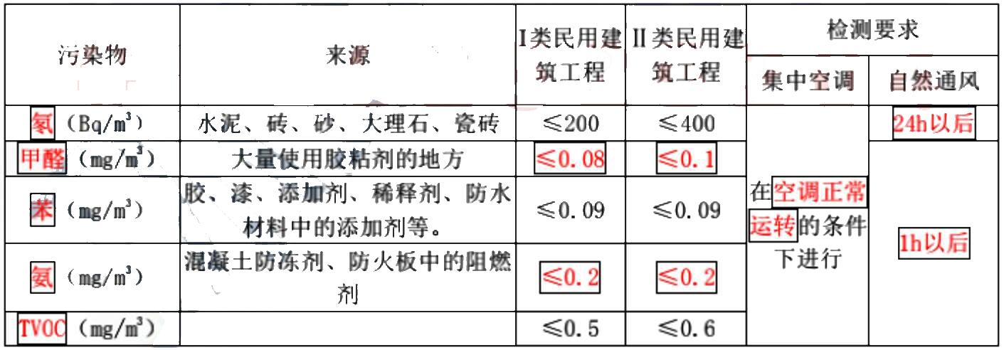 事件:工程验收前,相关单位对一间 240m2 的公共教室选取 4 个检测点,进行了室内环境污染物浓度的检测,其中两个主要指标的检测数据如下: