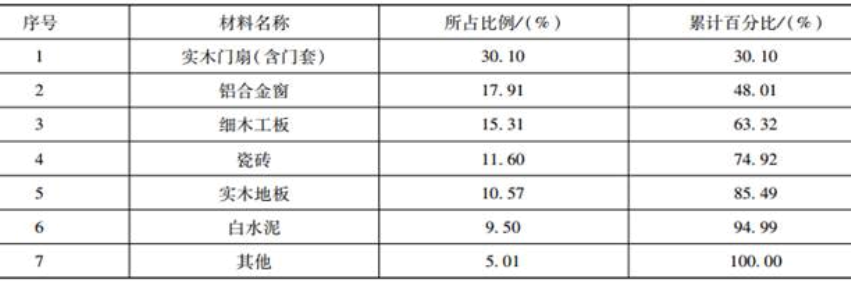 各种装饰装修材料占该批材料价款的累计百分比一览表
