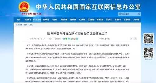日前,国家网信办发出通知,要求全国互联网直播服务企业自7月15日起,向属地互联网信息办公室进行登记备案工作。此次备案主体为从事互联网新闻信息转载服务、传播平台服务的互联网直播服务企业以及其他类互联网直播服务的企业。通知要求,各属地互联网信息办公室应主动通知本地区互联网直播服务企业进行备案,明确所需材料、提交形式等要求,