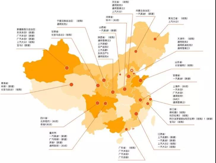 截止2017年12月31日,广汇汽车旗下共800 家网点,其中包含 737 家 4S 店,覆盖全国 28 个省、市、自治区。较 2016 年末增加 78 个门店,因受拆迁及策略性调整等关闭门店 11 家。