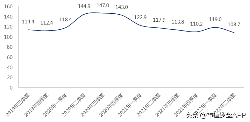 2022年二季度自动化设备上市公司发展指数108.7,环比下降10.3,处于近三年最低水平,反映自动化设备上市公司群体较A股发展优势缩小。
