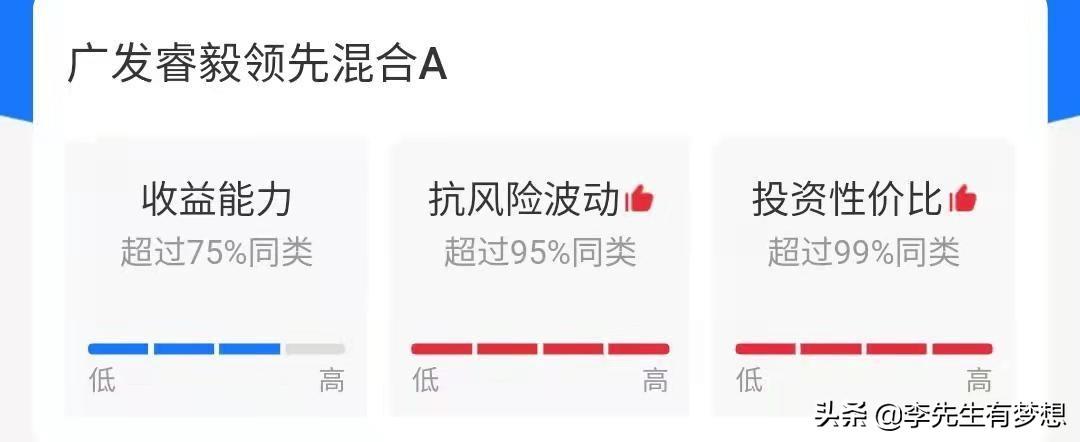 在李先生的量化模型中广发睿毅领先混合82.550分(2022.02.13),获得金银牌。以下是根据基金公司、基金经理、基金产品三个维度分析情况: