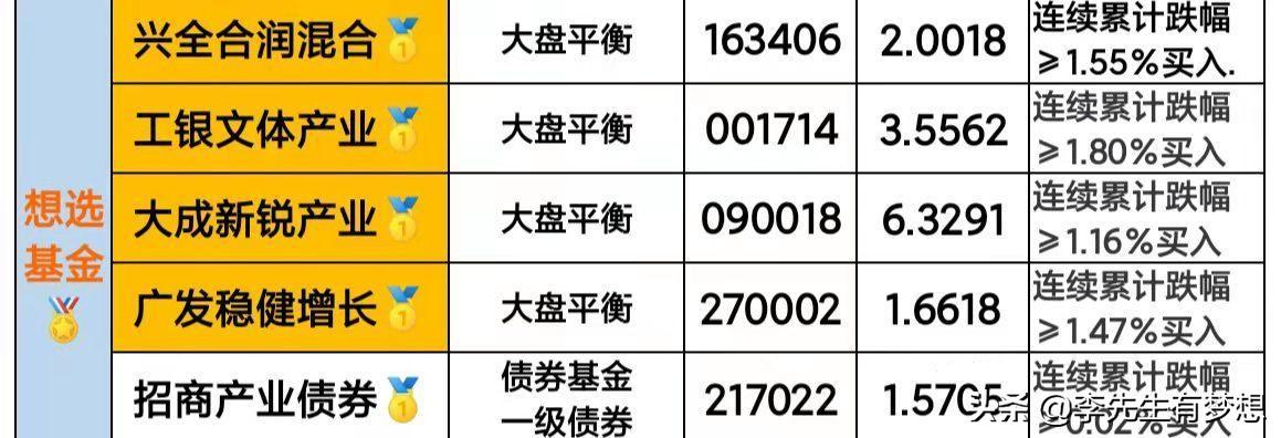 。目前“想选基金”组合持仓:兴全合润混合(金牌)、工银文体产业股票(金牌)、大成新锐产业混合(金牌)、广发稳健增长A(金牌)、招商产业债券A(金牌)。共有四种组合方式,分别为: