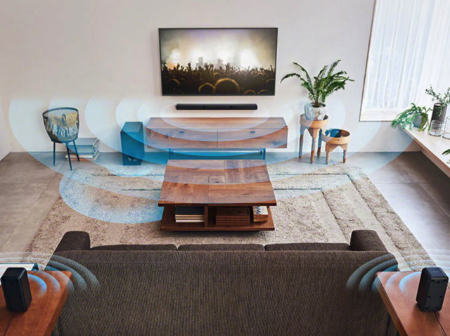 索尼HT-S40R回音壁具有左声道、中置声道和右声道,配合左、右后置环绕和低音炮,组成5.1声道实体环绕结构;左、右、中置声道的箱体采用隔离设计,保证声音清晰,另外各个声道都配备了低音倒相管的结构设计,可以带来富有感染力的声压效果。