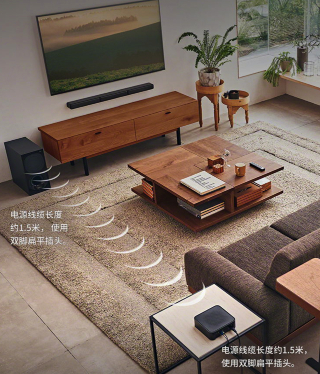 采用全数字放大器S-Master,让音频信号经由数字放大输出,减少失真,带来丰富细节;前置音响和后环绕之间通过接收器无线连接,减少线缆束缚;支持HDMIARC、光纤、3.5mm立体声接口连接,支持蓝牙/U盘播放音乐;表面采用拉丝质感设计,可与家居环境和谐搭配。