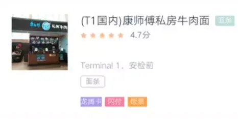 比如杭州萧山机场的康师傅私房牛肉面等。
